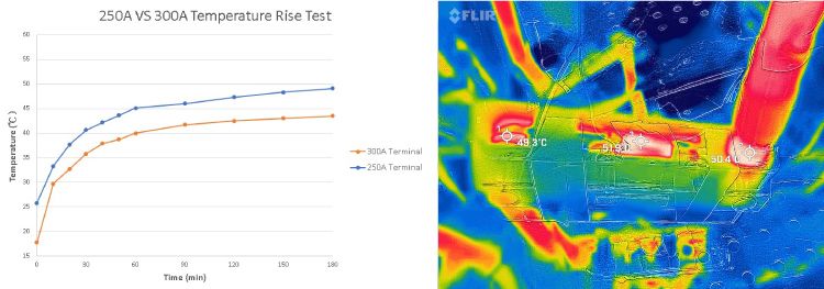 Up until late 2010's, there were no consistent way to determine the rating of a busbar. The old way is to utilize temperature rising tests of a busbar to determine its maximum rating. According to Institute of Electrical and Electronics Engineers (IEEE) guideline:“a busbar should be rated at the highest amperage passing through any section of the busbar, with a maximum of a 50° C rise in temperature from an ambient temperature of 50° C.”